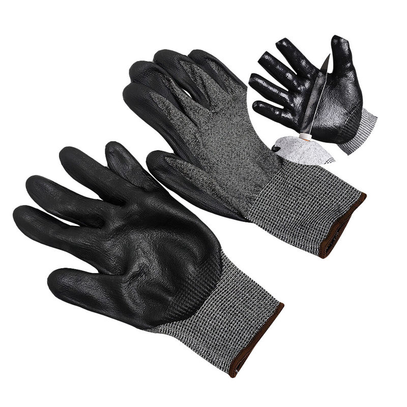 Black 18 Knitted Safety Work Glove Level 3 Cut Resistant Rubber Palm Coated Gloves
