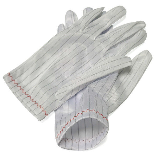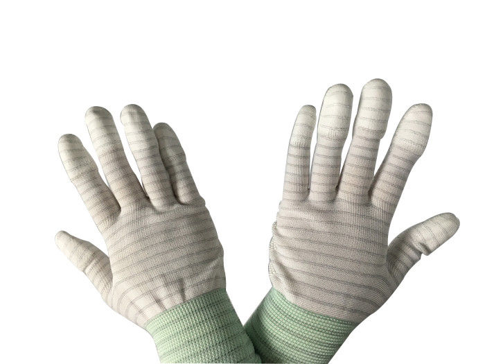 White Stripe PU Fabric ESD Anti Static Gloves Lint Free For Industrial Cleanroom