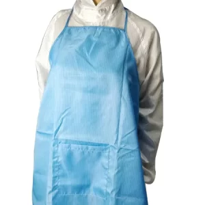 White Blue ESD Apron Antistatic One Size Fits All One Pocket 98% Polyester 2% Carbon Fiber