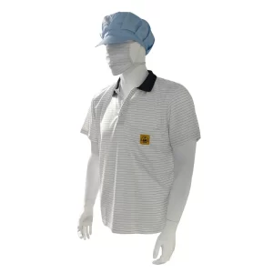 7MM Stripe White Silk Knitting ESD Anti Static POLO T-Shirts 99% Polyester 1% Conductive