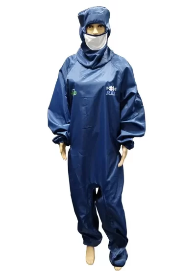 ISO 4 Cleanroom ESD Safe Clothing With Attached Hood Boots And Facemask