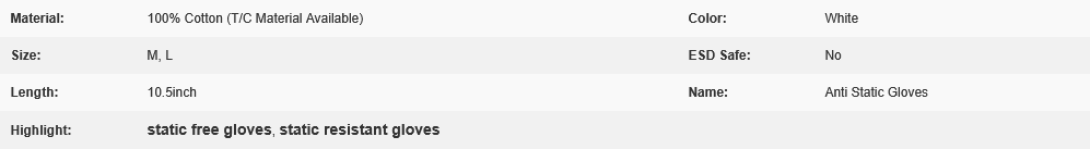 100% Cotton Fabric Gloves Anti Static Gloves Anti Static For Electronics Assembly