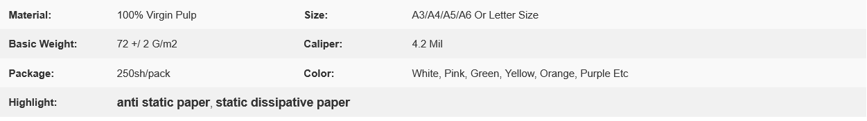 100% Virgin Pulp ESD Cleanroom Paper 72 / 75 gsm Size A3 A4 A5 A6 Or Letter Size