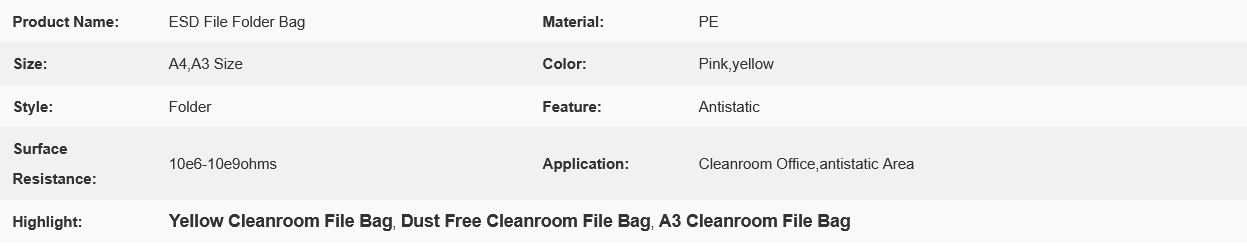 11 Hole Pink or Yellow Cleanroom File Bag A4 A3 Dust-Free ESD Anti-Static Document Bag