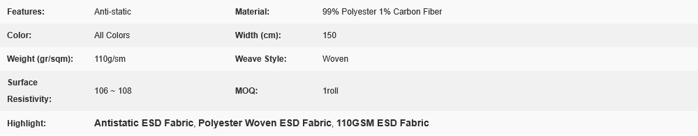 150cm 110GSM Polyester Woven Antistatic ESD Fabric