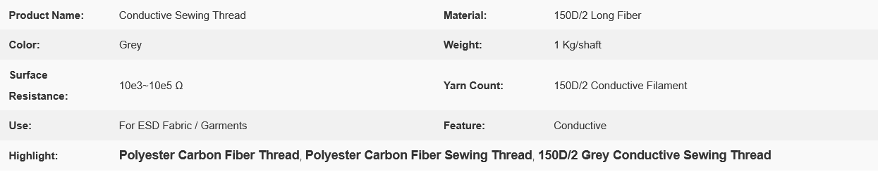 150D/2 long fiber conductive sewing thread is a type of sewing thread with specific specifications and properties.