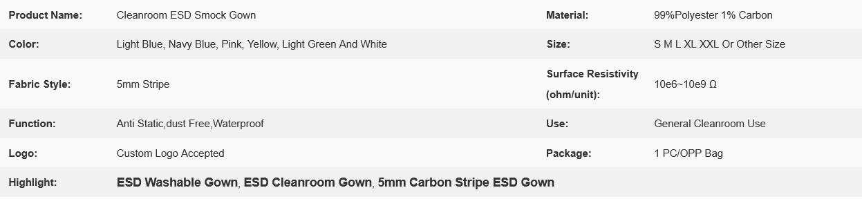 | Cleanroom ESD Smock Gown | |