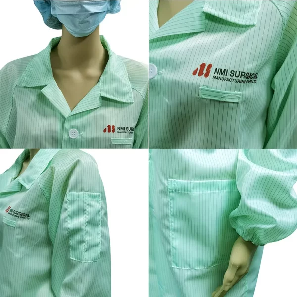 2 Side Pockets Lapel Collar Button 5mm Carbon Stripe ESD Cleanroom Gown Washable