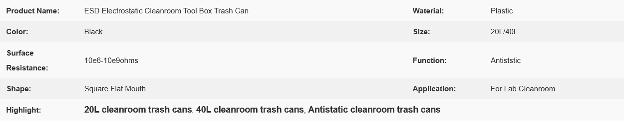 20L/40L Black Plastic Antistatic Electrostatic Cleanroom Tool Box Trash Can