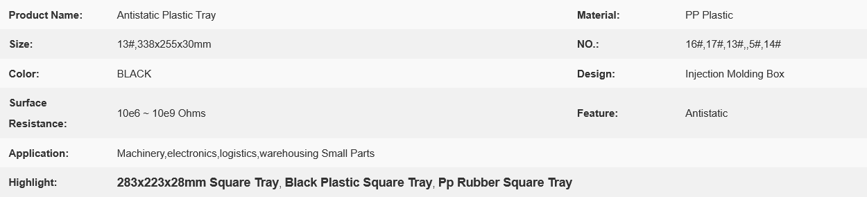 283x223x28mm Black Plastic Square Tray Anti-Static Tray Parts Box Turnover Box Pp Rubber Tray Classification Material Box Square Basin Conductive Frame