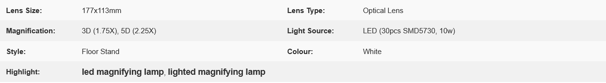 This lamp has 30 high-quality SMD LEDs that illuminate your project with bright white light, and the 7in.x4.4in. lens in  3-Diopter / 5-Diopter magnifies 1.75 times / 2.25 times letting you see any tiny details
