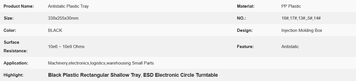 338x255x30mm Anti Static Square Tray Black Plastic Rectangular Shallow Tray ESD Electronic Circle Turntable