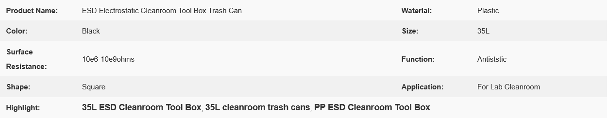 35L PP Plastic ESD Electrostatic Cleanroom Tool Box Trash Can