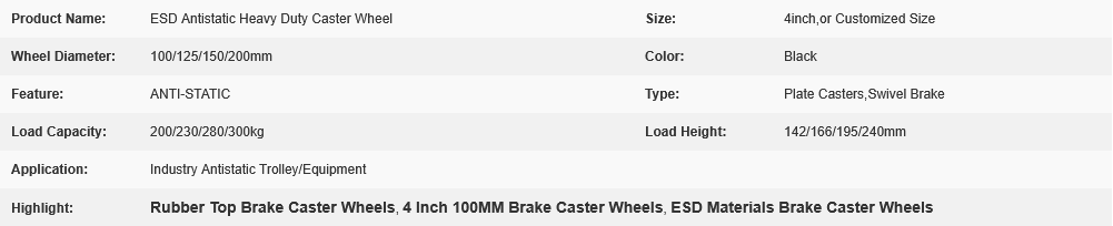 4 inch/100 MM Rubber Top Plate Swivel W Brake Caster Wheels for Industry Antistatic Trolley/Equipment