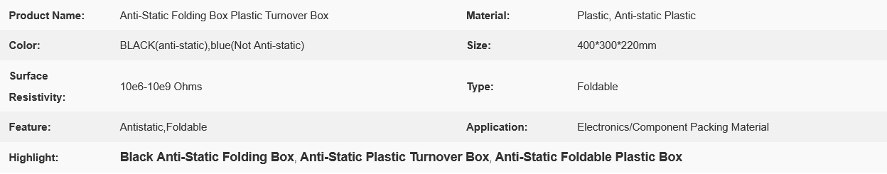 | Name | ESD Foldable Storage Box Plastic Attached Lids Turnover Crate |