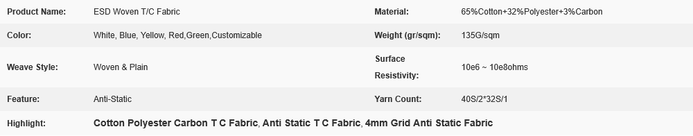 4mm Grid Cotton Polyester Carbon Woven Anti Static T C Fabric