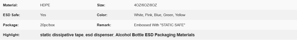 4oz 6oz 8oz ESD Packaging Materials Static Dissipative HDPE Alcohol Bottle
