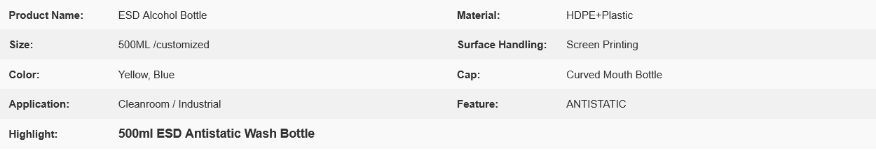 500ml ESD Antistatic Wash Bottle Plastic Squeeze Typealcohol Dispenser Anti-Static Glue Dispensi for ESD Safe Area