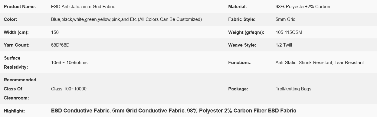 5mm Grid 98% Polyester 2% Carbon Fiber ESD Conductive Fabric