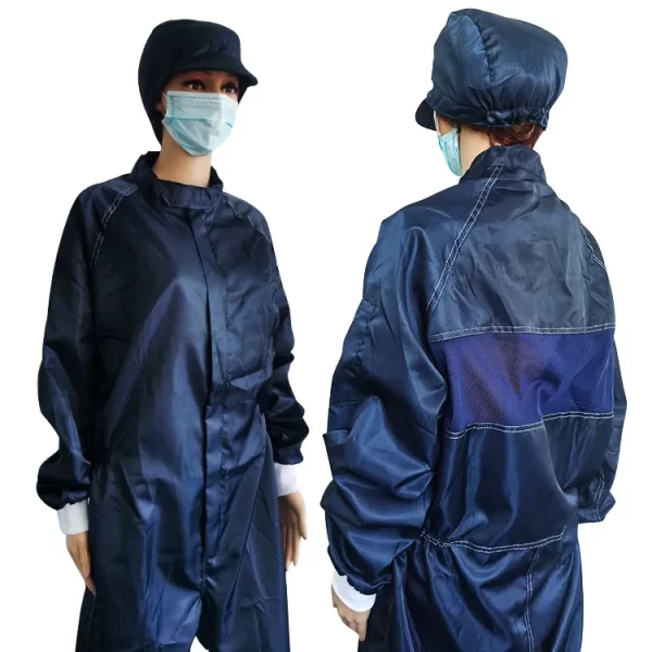 5mm Grid Dark Blue ESD Cleanroom Jumpsuit Coverall for Electronics Industries