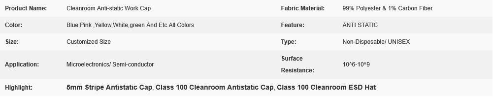 5mm Stripe ESD Antistatic Cap For Class 100 Cleanroom
