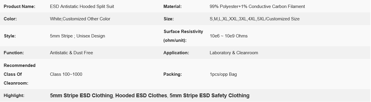 5mm Stripe Hooded ESD Antistatic Split Suit Safety Working