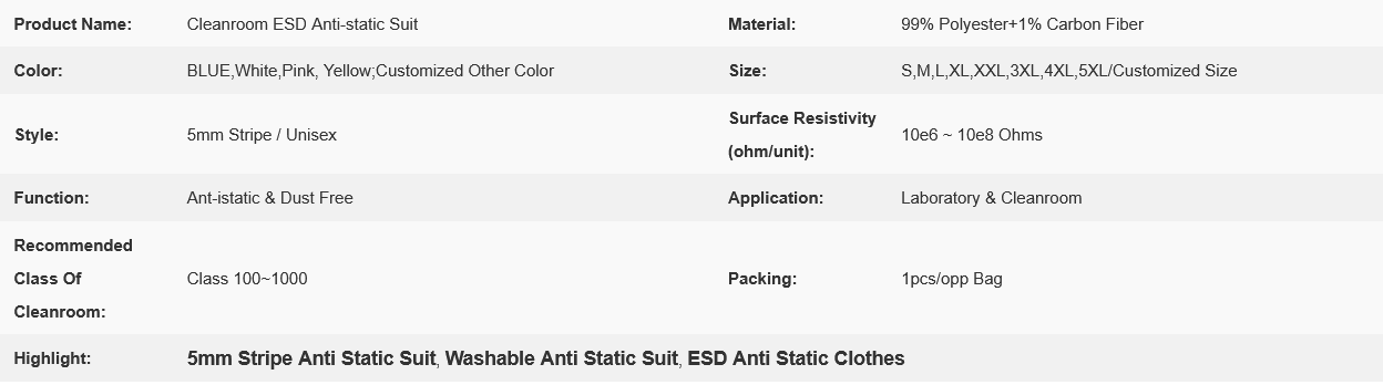 5mm Stripe Washable Reusable ESD Anti Static Suit