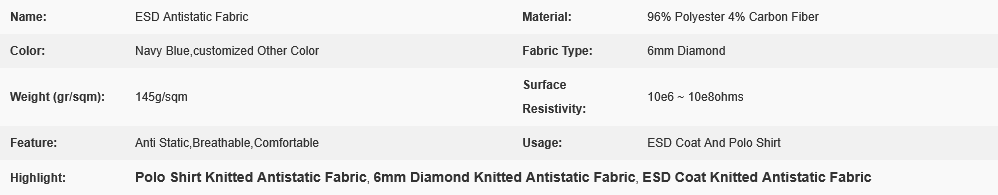 6mm Diamond Navy Blue Knitted Antistatic Fabric for ESD Coat and Polo Shirt