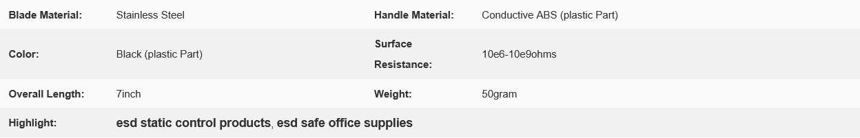 1, It is constructed of static dissipative ABS handle in black color, and stainless steel blades
