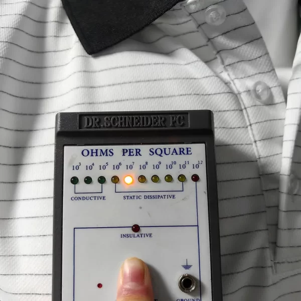These anti-static polo shirts are specifically designed to prevent the buildup and discharge of static electricity. The inclusion of conductive silk in the fabric allows the shirts to dissipate static charges and minimize the risk of ESD-related damage. The conductive properties of the shirts safely ground any static charges generated by the wearer, reducing the likelihood of electrostatic discharge.
