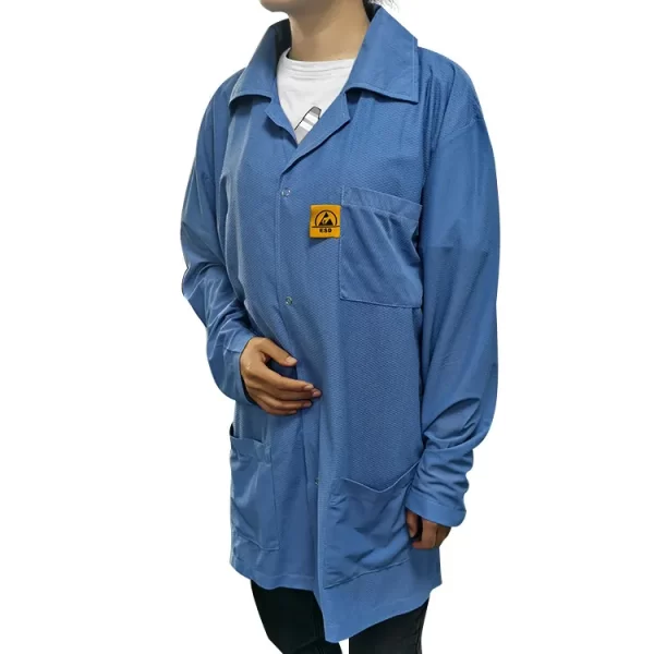 3.Designed with ESD-sensitive environments in mind, this coat effectively prevents the buildup and discharge of static electricity, minimizing the risk of damage to sensitive electronic components and equipment. The antistatic properties of the fabric help maintain a safe working environment and protect against electrostatic-related hazards.