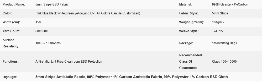 99% Polyester 1% Carbon 5mm Stripe ESD Antistatic Fabric