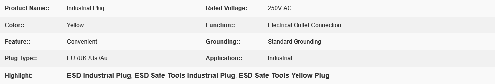 ABS Snap Grounding ESD UK US EU Industrial Plug Yellow Color