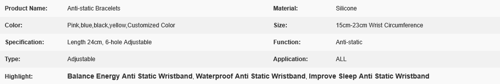 Anti static wrist strap eliminates static electricity through silica gel containing other energy elements. It is simple and suitable for any shape of you.