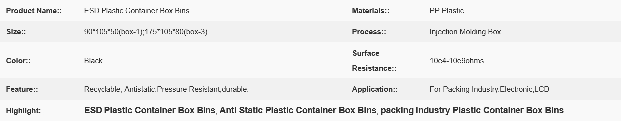 90*105*50(box-1) 175*105*80(box-3) Anti Static Black Plastic Slanted Mouth Component Box