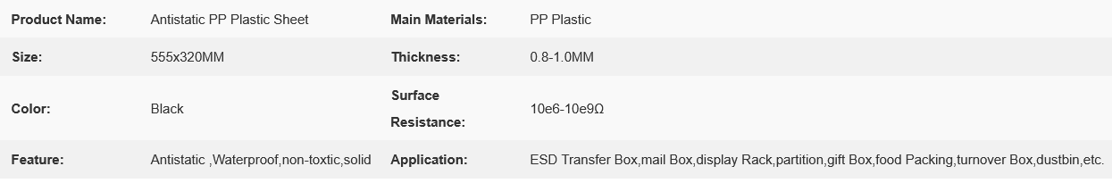 | Product name | Antistatic Solid PP Sheets |