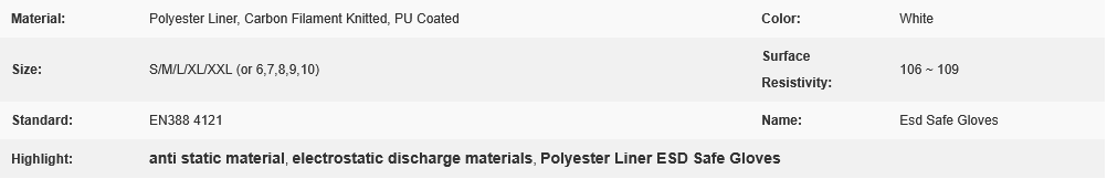 Anti Static Gloves ESD Safe Materials Polyester Liner Carbon Filament Knitted
