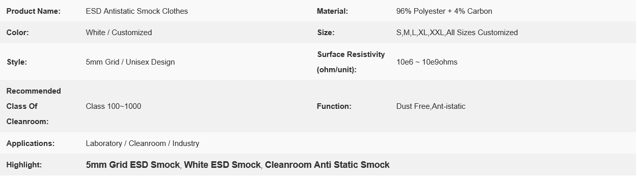 | Cleanroom ESD Smock | |