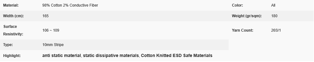 Description: Anti-static ESD Knitted Cotton Fabric, 10mm Stripe