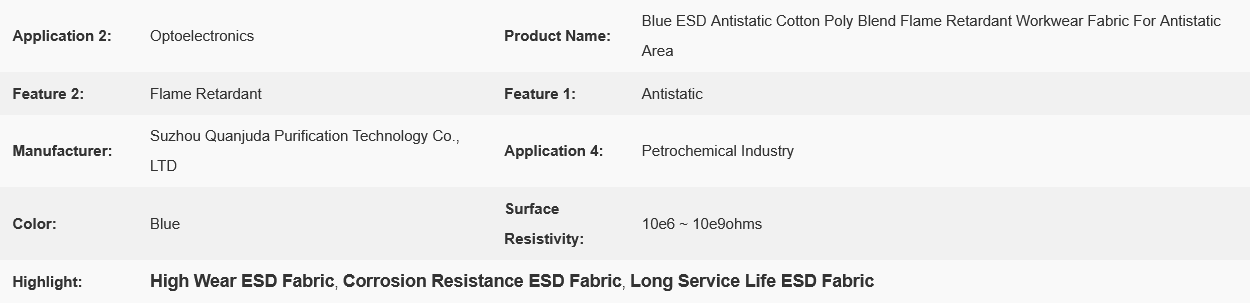 Antistatic ESD Fabric High Wear and Corrosion Resistance Surface Resistivity 10e6 10e9ohms Long Service Life