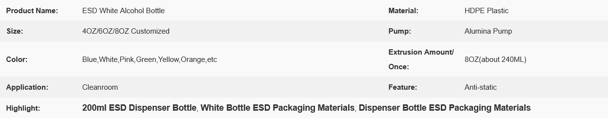 Antistatic ESD White Bottle 200ml Chemical Alcohol Solvent Dispenser Plastic 0Antistatic ESD White Bottle 200ml Chemical Alcohol Solvent Dispenser Plastic 1