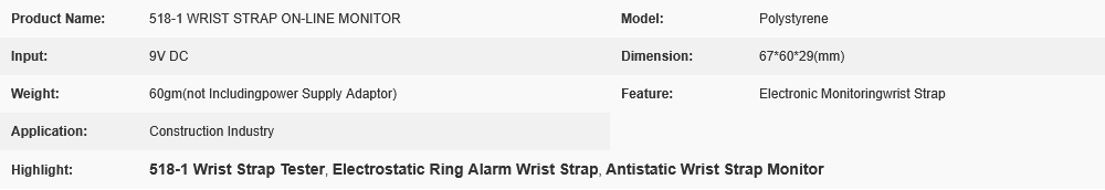 | Distinguish: | 518-1 can only detect 1 wrist strap, and 518-2 can detect 2 wrist strapt bands. |