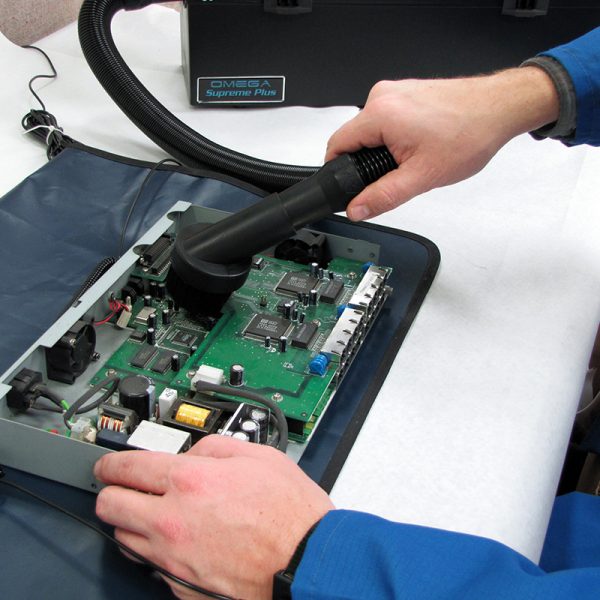 The Atrix Omega Supreme Plus Electronic vacuum VACOSE110 is an excellent H12 Ultrafine immediate containment option for cleaning static sensitive equipment such as computers, copiers, printers, data centers, ATM’s, gaming, banking, robotic and telecom applications. This vacuum features our most comprehensive ESD safe accessory options.