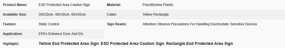 Attention Static Control Area ESD Sign Size 20x30cm Yellow Rectangle for EPA