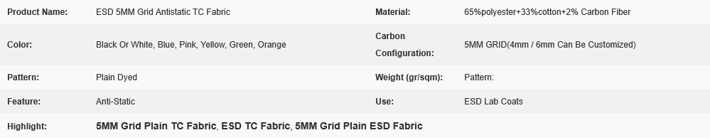 | ESD 5MM Grid Antistatic TC Fabric | |