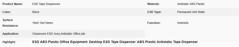 Black ABS Plastic Office Equipment Desktop ESD Antistatic Tape Dispenser