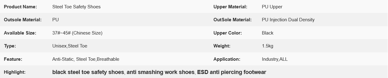 | Type | Antistatic Anti Slip Steel Toe Safety Shoes |