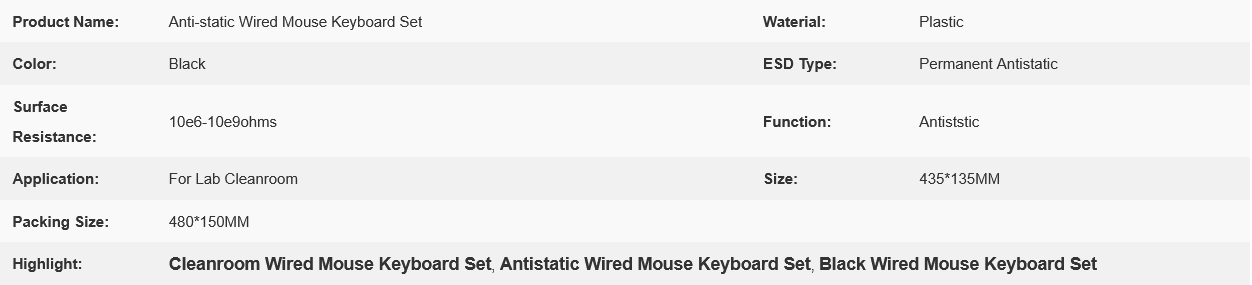 Black Cleanroom ESD Antistatic Wired Mouse Keyboard Set