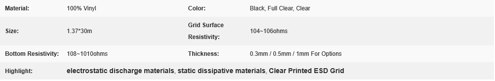 It is constructed of 100% antistatic PVC sheet, available colors are transparent and black, printed with black carbon lines, if you donot want any grid pattern, also available all clear type