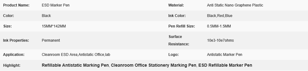 ESD Antistatic Refillable Marker Pen